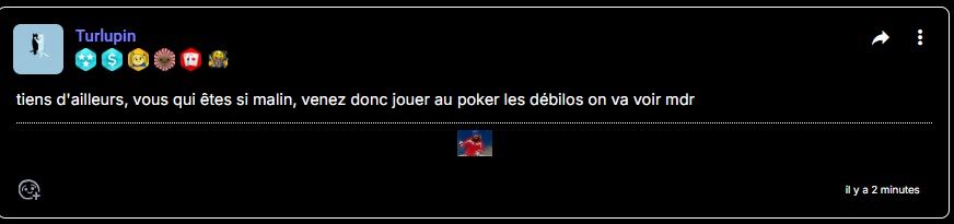 tiens d'ailleurs, vous qui êtes si malin, venez donc jouer au poker les débilos on va voir mdr