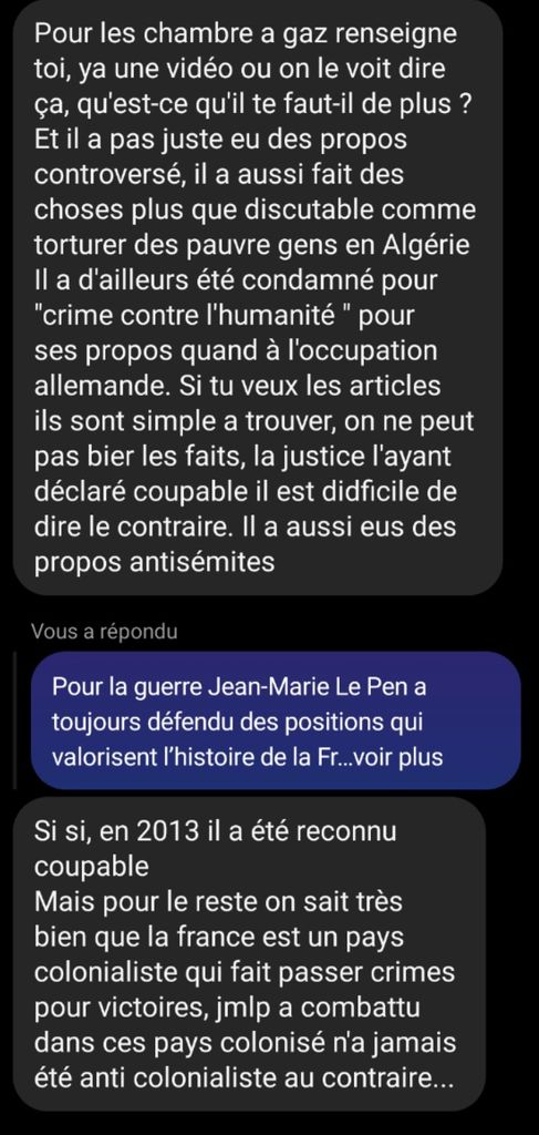 Opprimé un peuple entier, mais LePen a été dictateur comme Franco ou quoi ?