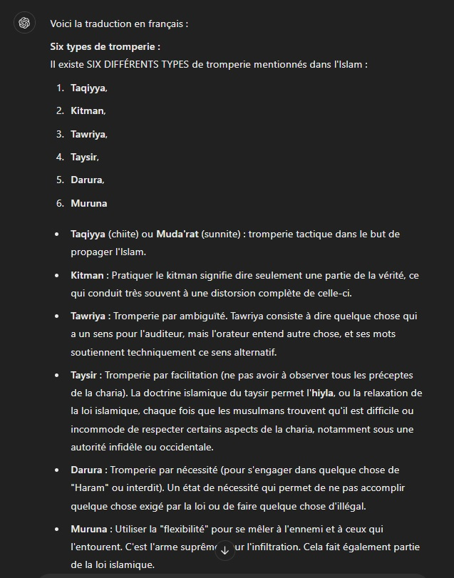Il y'a d'ailleurs différents concepts de mensonges en Islam pour se protéger ou pour duper les mécréants pour mieux les enculer ensuite: