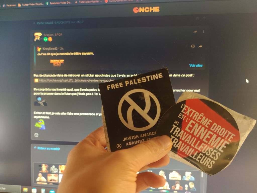 Pourquoi j'ai fait un post où je montre que j'ai arraché ces mêmes stickers il y'a plusieurs mois et que je les ai conservé chez moi et que j'arrive à reprouver que je les ai devant le même écran d'ordi devant Onche et qu'ensuite je sors faire des photos avec ces stickers dans ma ville espèce de mythomane.
