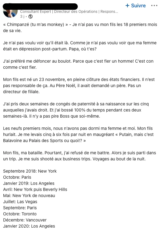 Gpalu: un père abandonne sa famille pour son travail, il écrit une chanson pour se faire pardonner et poste tout ça sur Linkedin pour faire son AW, voilà la chanson