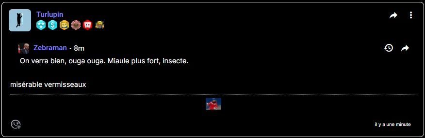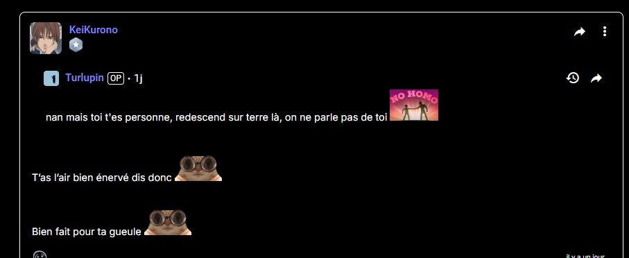 Il se plaint de relancer des dramas, sur ce topic, il dit tagueule et là, Turlupin part en mode chouineuse.