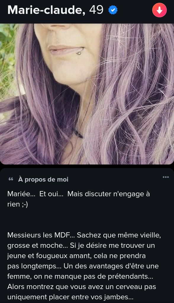 Le pire c'est que des mecs parlent à ce genre de spécimen qui traite les hommes de MDF