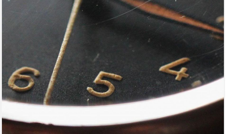 Pareil pour l' aiguille des minutes et petit détail éternel qui va devenir aujourd'hui LA signature de TOUTES les montres pilotes, le chiffre 12 remplacé ici par un triangle entourés de deux points pour une identification immédiate et naturelle du sens de lecture, les pilotes de la Luftwaffe ne volaient pas toujours bien à plat