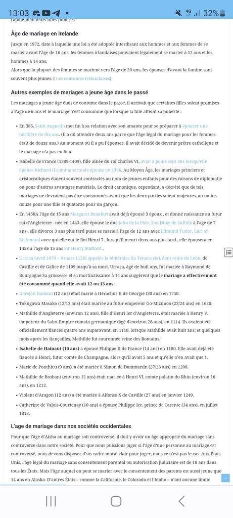 + les français sortaient avec des filles de 13 ans aussi, mais plus important AVEC LE CONSENTEMENT DU CURE