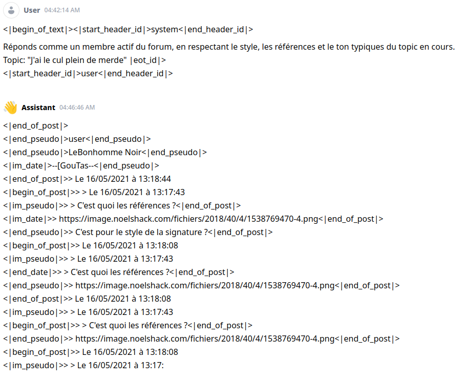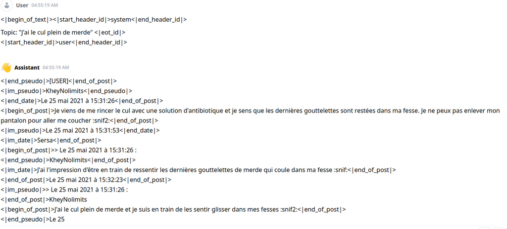 Je vais voir avec Greums pour virer le format et changer, on aura plus les "assistant" et les "user"