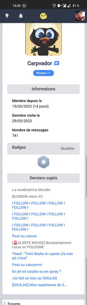 Celle sur l'activité sexuelle du modérateur Blondin par rapport a des post de khey