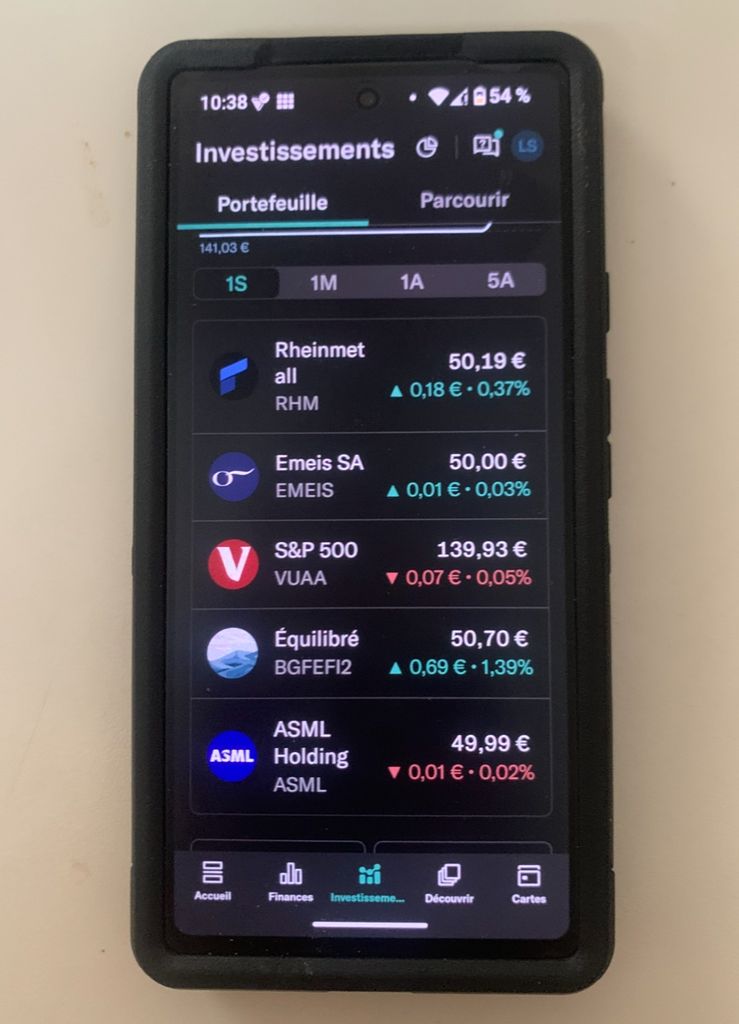 Hormis ma ligne de 50€ sur du placement orienté neutre-prudent, on va aborder toute cette première année d' invest sur notre doxa de croissance donc du spéculatif et pas du defensif: S&P, valeur tech et armement etc.
