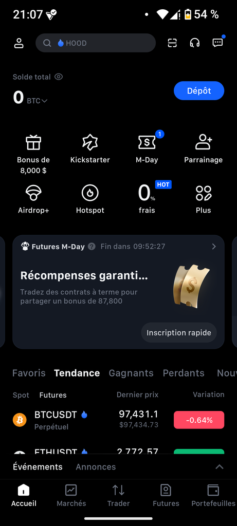 Célestin va donc trade sur MEXC (mais ce genre de cadeau bienvenue n' est pas propre à MEXC dans mes souvenirs KuCoin fait pareil)