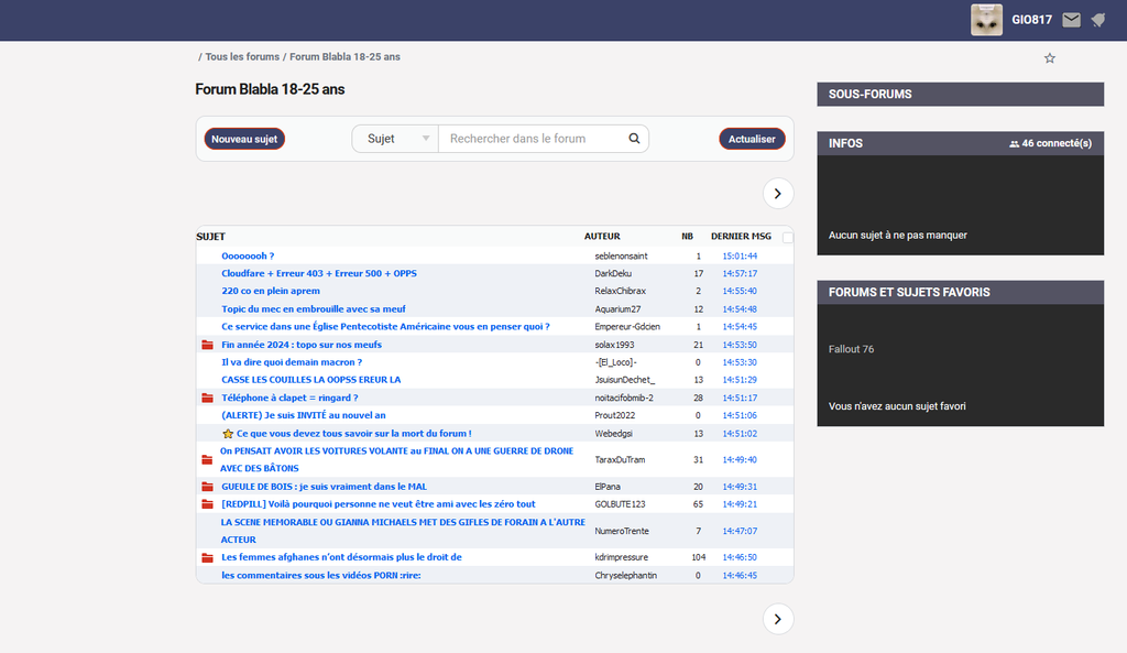 Peut-être que le 18-25 ont arrêtés d'aller sur le 18-25 et sont parties dans un autre sous-forum de JVC pour ne pas être trickard?