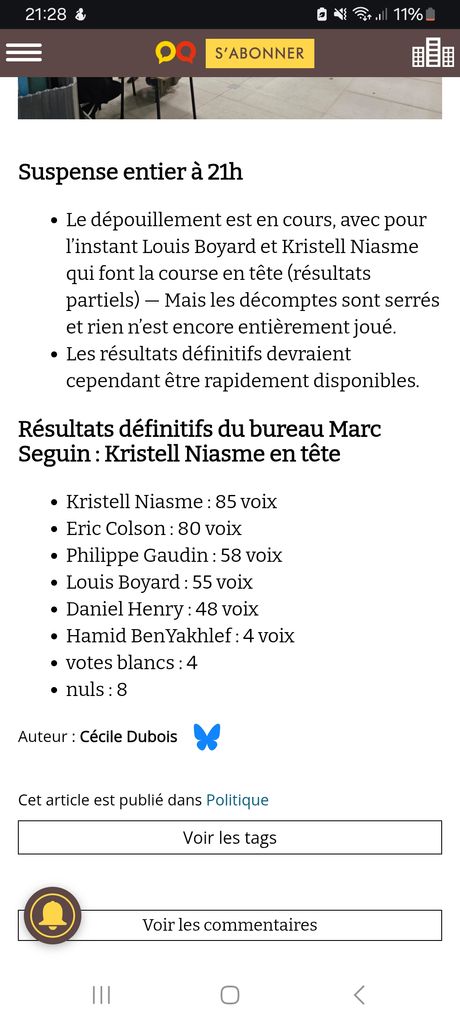 Le live s'actualise toute les 20 minutes et si c'est comme la semaine dernière, on le saura que tard dans la soirée