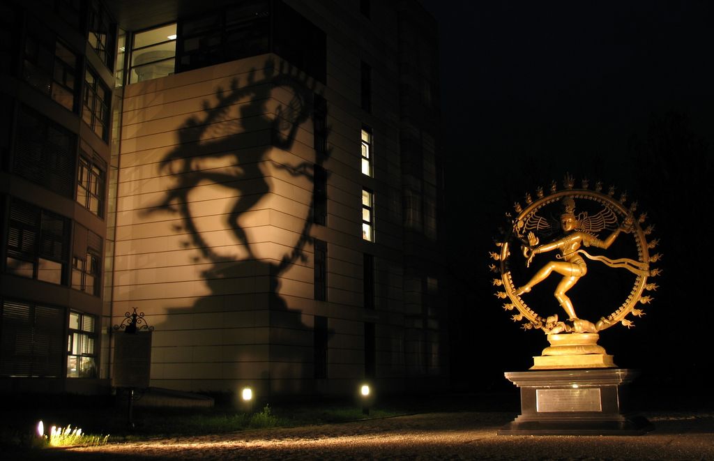 Rituel de sacrifice humain au CERN devant la statut de SHIVA