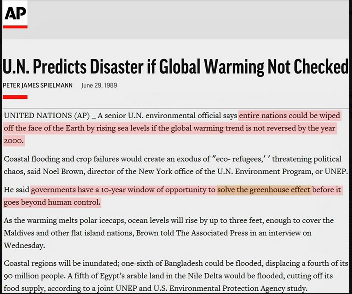 Rappel de quelques prédictions foireuses de l'ONU, GIEC et autres journaux oligarchiques.
