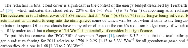 “Even the upper bounds of the IPCC estimates are well below the increase in radiative forcing caused by the reduction in total cloud cover.”