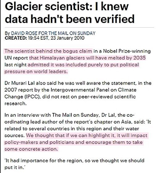 D'ailleurs pourquoi est ce que le GIEC a affirmé que l'Himalaya fondrait d'ici 2015? Pour des raisons politiques tout simplement.
