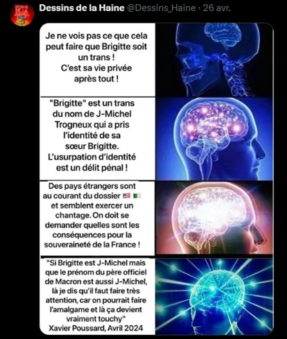 Il s’agit de ne pas lâcher prise. Si l’affaire Trogneux a été militarisée, à nous de la considérer comme un siège visant à faire sortir de la présidence ce couple d’imposteurs qui nous fait honte et détruit la France méthodiquement depuis maintenant 7 ans. Leurs sponsors, ceux qui ont cautionné ou porté ce couple et son histoire sordide au pouvoir, ne seront pas oubliés. #BecomingBrigitte