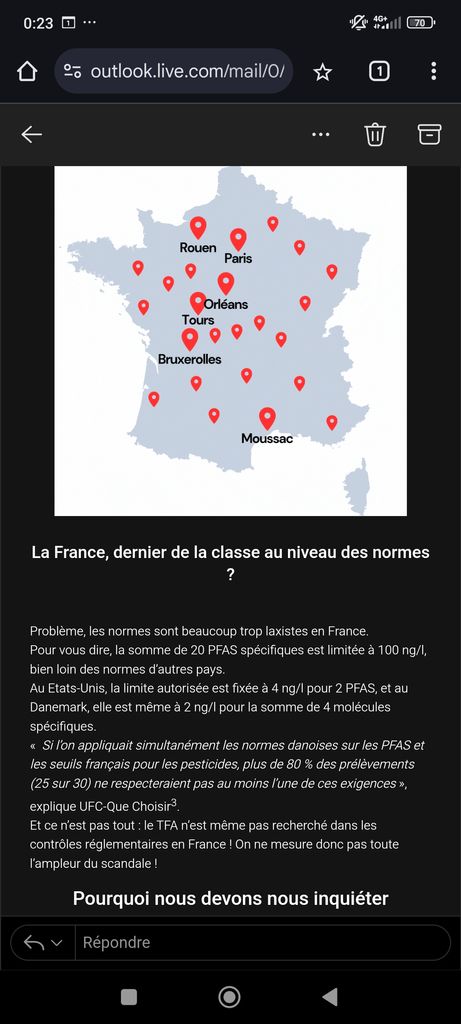 Et puis tu sauras qu'on a des systèmes de nano/ultra filtration ou de combo ozonation/charbon actif pour traiter ce genre de pollution dans l'eau potable