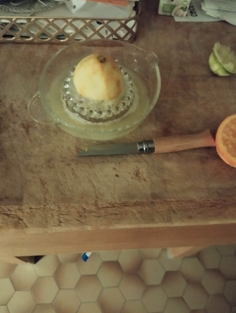 Le jus et le zeste d'un e demi orange, un demi citron et un demi citron vert