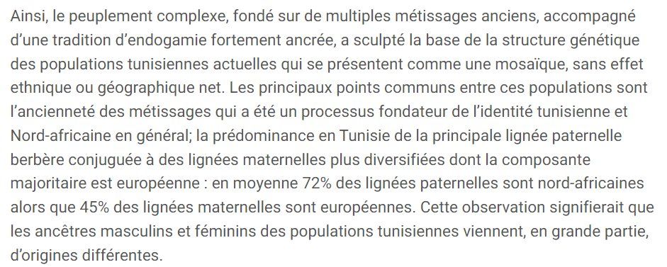 Un exemple frappant est avec la Tunisie, pays considéré à tort comme arabe, mais berbère génétiquement.