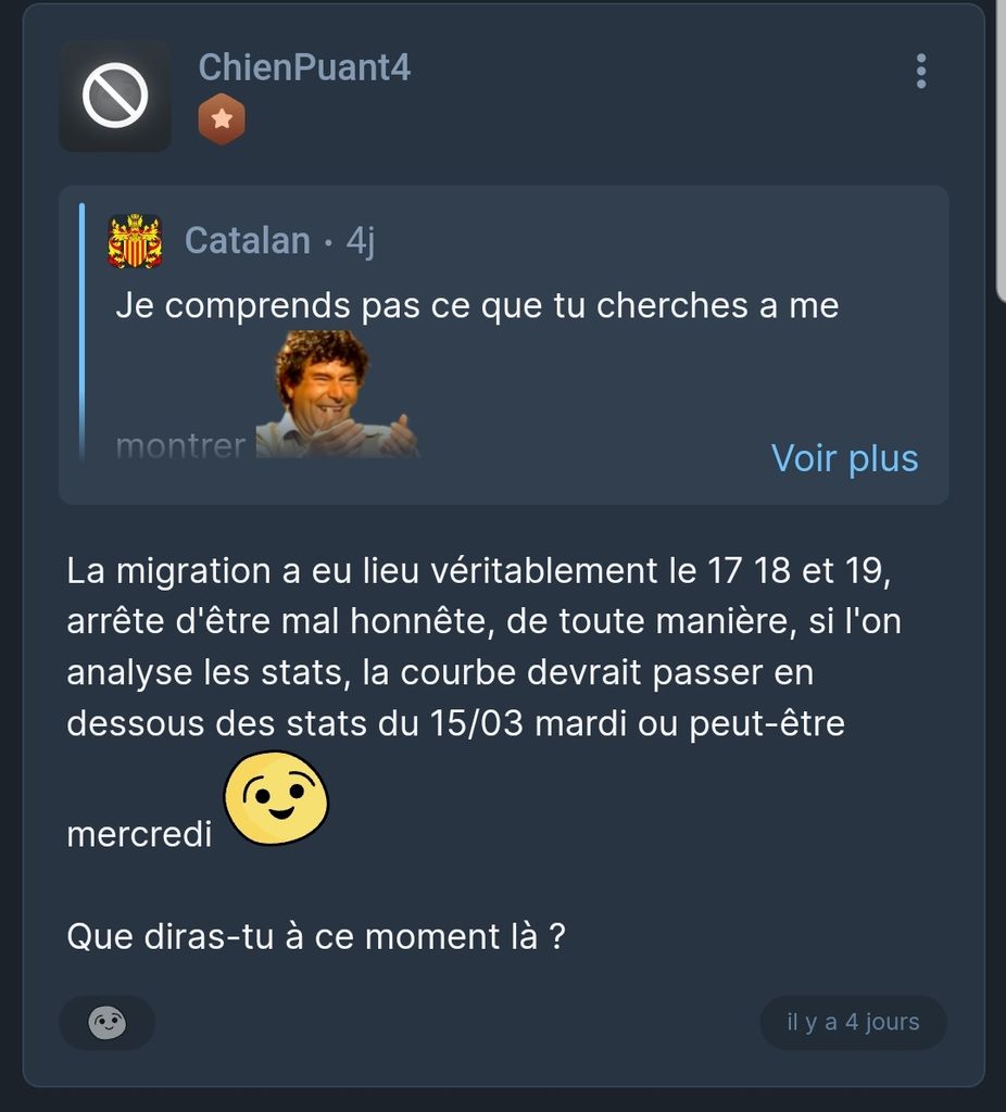 Non mais si tu t'attendait à ce que les mecs qui ont fait la migration restent connecté h24 c'est que t'es naïf tu crois pas ?