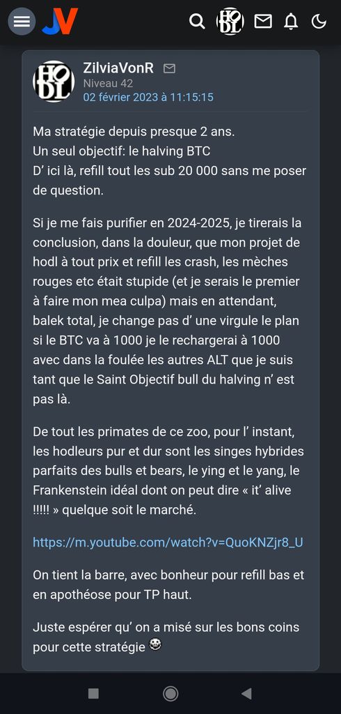 J' ai expliqué au khey de tenir bon jusqu' au halving quand le BTC était sub 20k et qu' acheter à ces prix là c' était cadeau