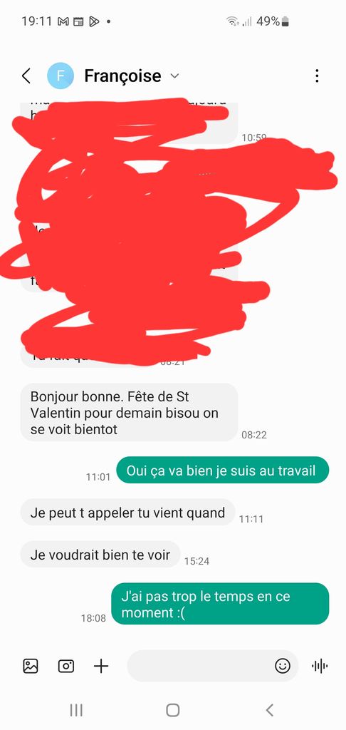 Déjà tal elle mavais envoyer un sms que jetais encore au taff....