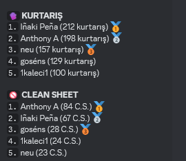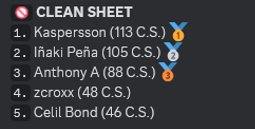 Then FINALLY, ONE OF MY BEST ACHIVEMENT IN HAXBALL just behind 11 v 11 tournament UFEG UCL won and winning all 11 positions in 11 V 11 UFEG : : WINNING THE FIRST PLACE IN CLEAN SHEET RANKING in 7 V 7 UFEG. Not only being first place but also defeating in the process the corrupter VDS company who wanted me down at all costs, stripping me of 30 C.S. Even stripping me of at least 2 others C.S. unfairly, meaning that even if I have 84 clean sheets officially, in fact I have 116. That's not even counting the matches that were not counted just because of the fact that there were not enough people in the match at the end. + the 2/3 matches where I was heading to clean sheets but suddently crashed and got disconnected just before the end. That puts me over 130 C.S. A world record! That's not even counting the fact that I really try hard only after September 19, 2024. How many C.S I would have If I try hard the entire month? Probably over 200! In addition, I also made more than 100 C.S. in less than 10 days between September 10, 2024 and September 29, 2024, an unbreakable record, especially considering the fact that I didn't play during one of the day within! I prooved with that achivement that the corruption and the rigging of statistics couldn't defeat me! Trolls and toxic people coudln't either! I BEAT THEM ALL! Legendary battle won! And the last record/achievement I wanted to get this 2024 year!