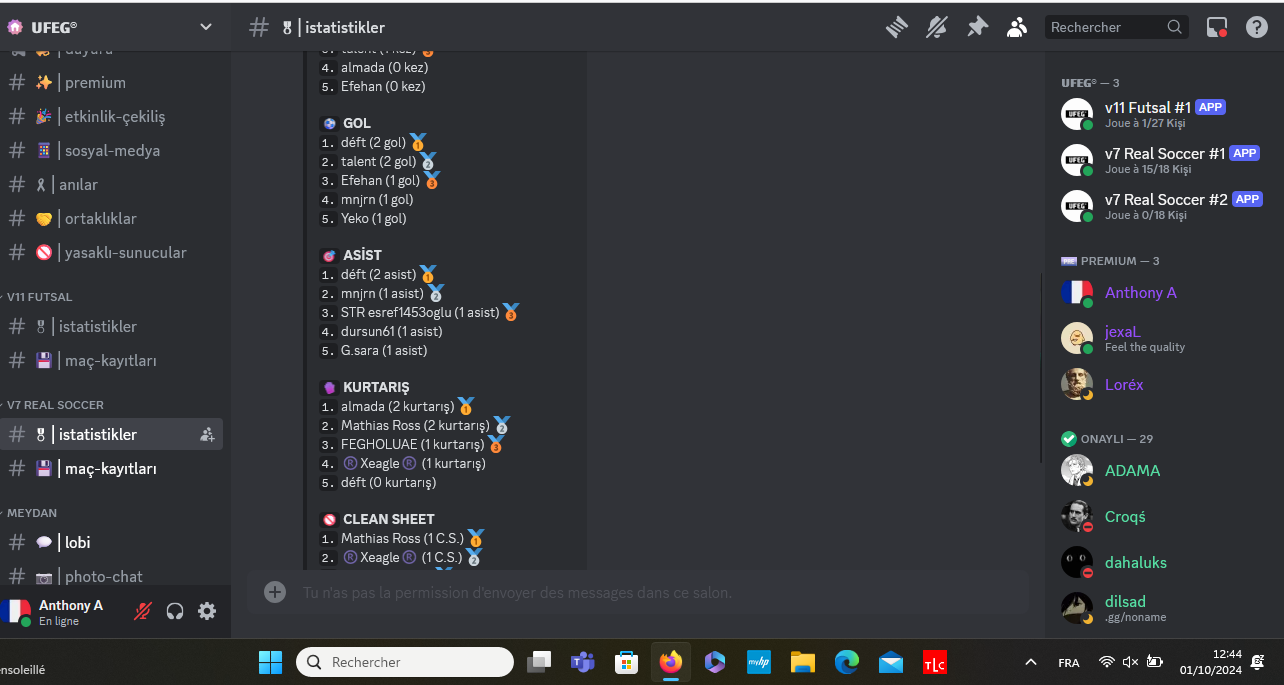 One of my best records so far, and unexpected : I manage to beat an unbreakable record on October 15th 2024, winning 15 7 v 7 UFEG matches in a row without stopping and without being captain a single time, making teams even more randoms.