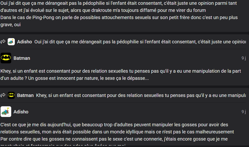 des pédo y en a et y en aura toujours, au moins là ils se démasquent tous seuls (même si je suis sûr que y a aussi full troll dans le lot)