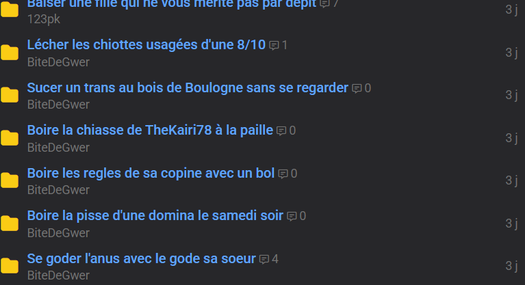Il est complètement dégueulasse ce site ça me rappelle les forums début des années 2000 où on se faisait passer pour des meufs pour griller des pédos