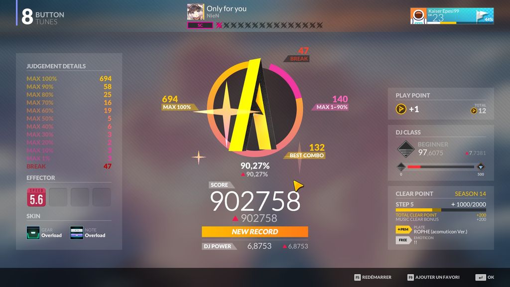 Et je vais jouer les Hard pour le moment histoire d'être plus a l'aise après j'irai fais des score de zinzin sur les SC