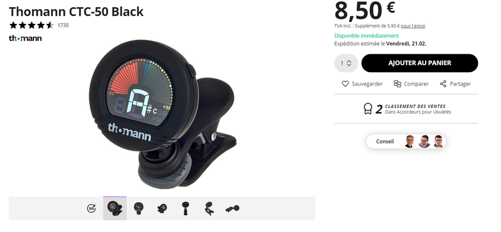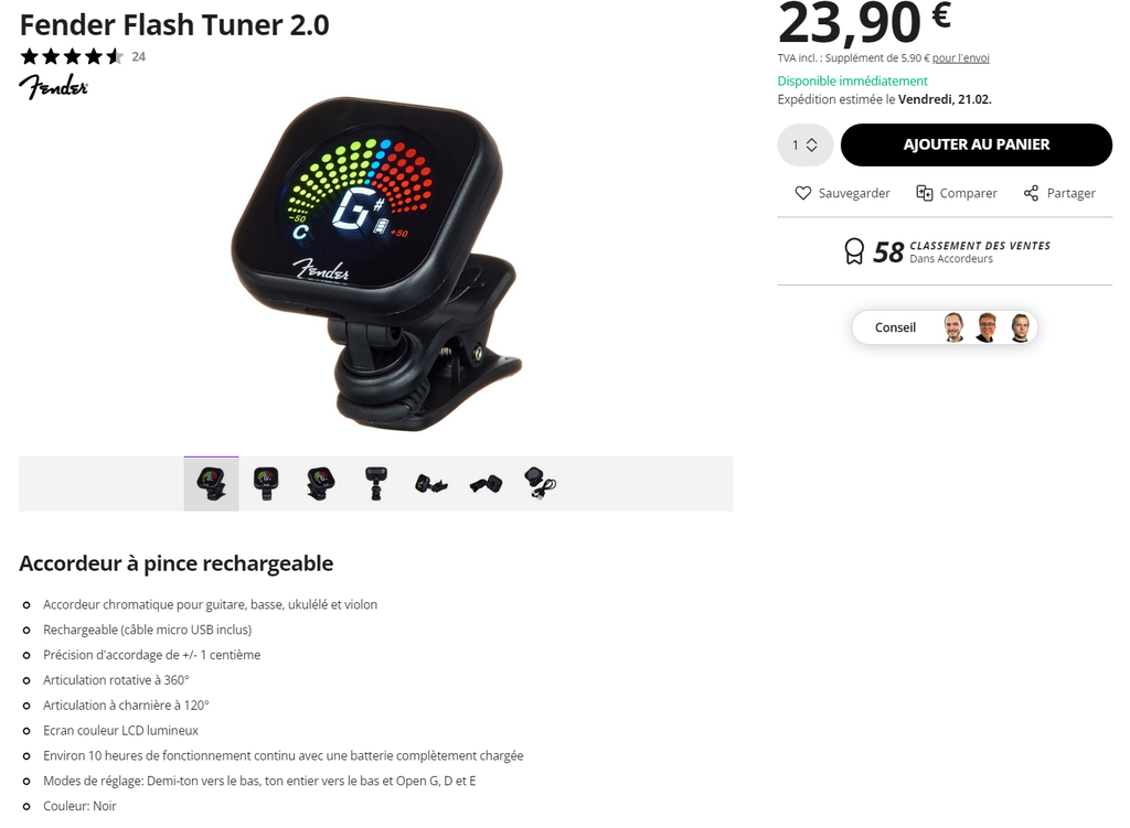 Pour un accordeur, tu peux t'en acheter un mais tu peux utiliser un DAW comme Reaper ou directement sur Rocksmith à la place