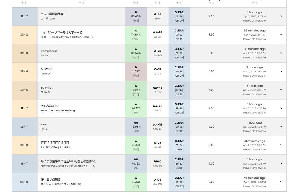 Je sais pas justement c'est pour sa que ça m'énerve amis bon je suis passer sur IIDX et la je suis sur une session de zinzin remplis de AA sur des 7 et 8 j'enverrai le résumé de ma session quand je l'aurai fini