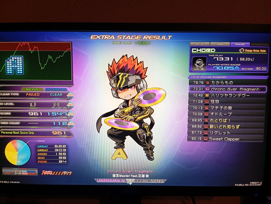 Moi aujourd'hui j'ai repris un peu IIDX et j'ai réussis a clear quelques 10 vraiment compliqué mais j'ai surtout eu mon 6e dan