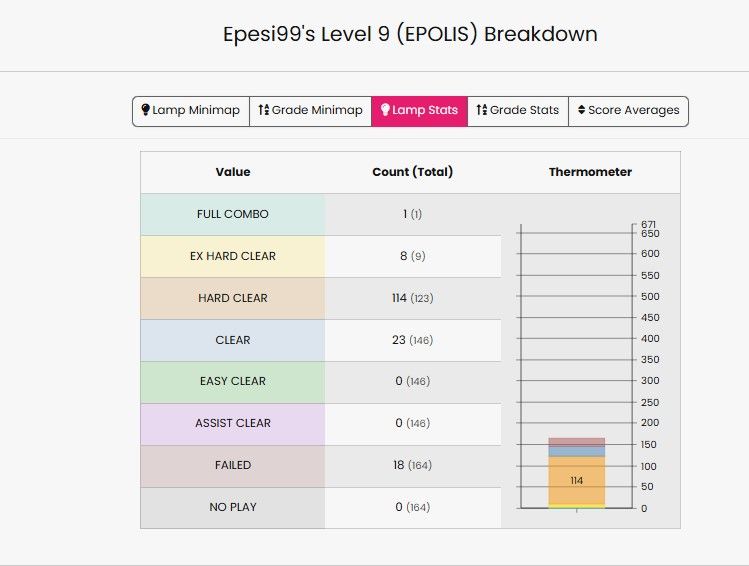 Par exemple sur IIDX epolis en comptant toutes les difficulté y'a 5341 scores a faire et c'est que IIDX 31 y'a IIDX 33 qui sort cette année et qui va rajouter énormément de musiques/difficulté
