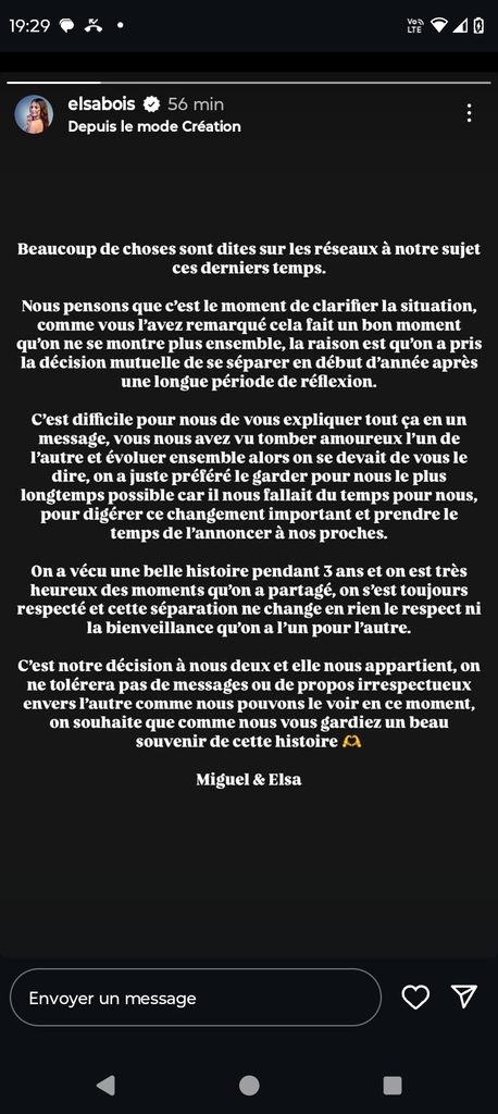 Ha c'est vrai , c'est la story qui date de 50 minutes en plus