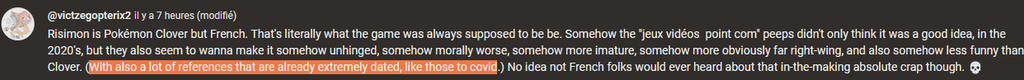 "Projet de merde : le jeu n'a le potentiel pour intéresser que quelques dizaines de personnes et de toutes façons il ne sortira jamais et sera une romhack buguée"