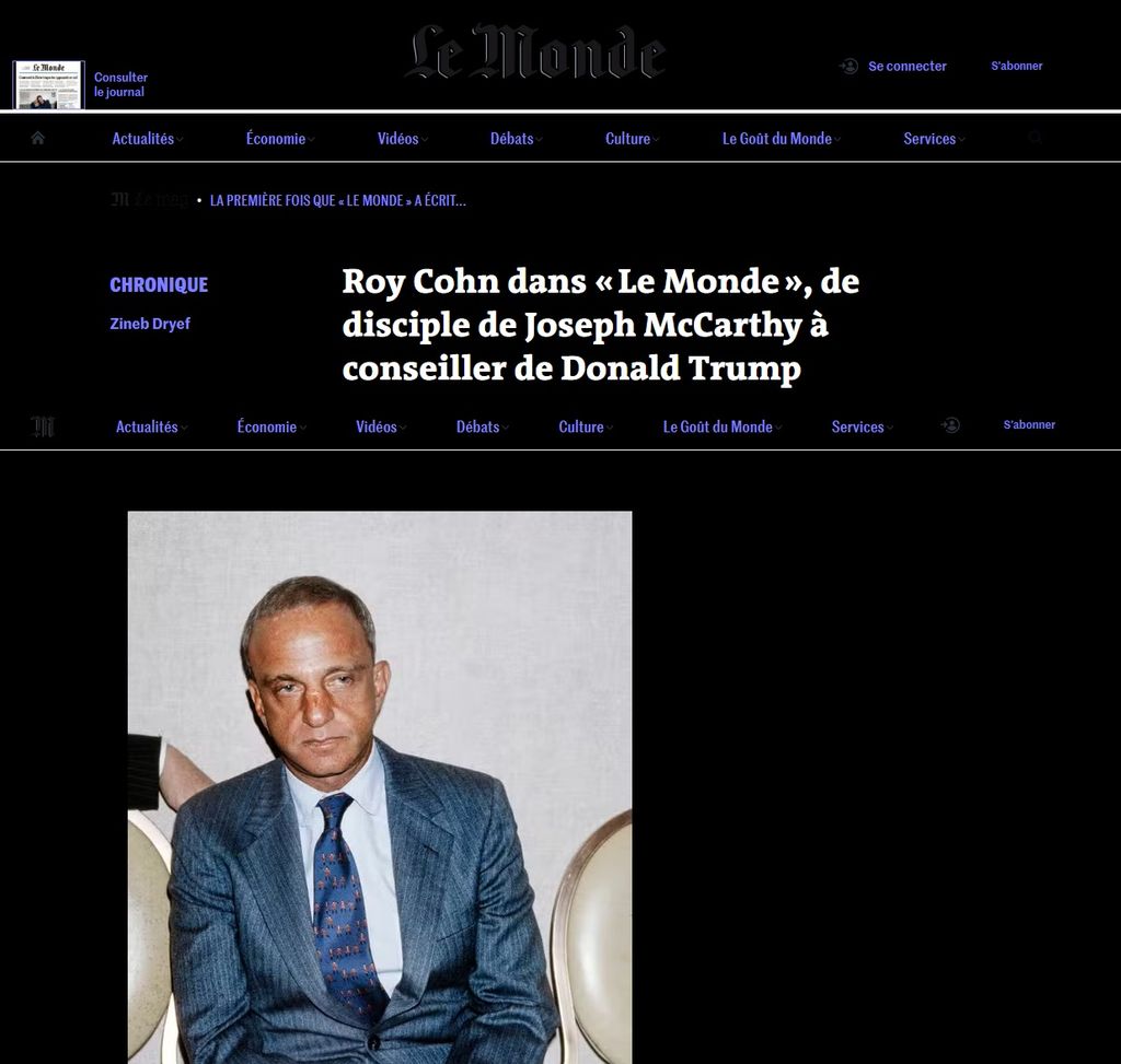Roy Cohn dans « Le Monde », de disciple de Joseph McCarthy à conseiller de Donald Trump
