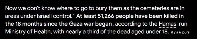Now we don't know where to go to bury them as the cemeteries are in areas under Israeli control." At least 51,266 people have been killed in the 18 months since the Gaza war began, according to the Hamas-run Ministry of Health, with nearly a third of the dead aged under 18.