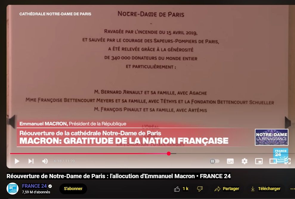 Réouverture de Notre-Dame de Paris : l'allocution d'Emmanuel Macron • FRANCE 24
