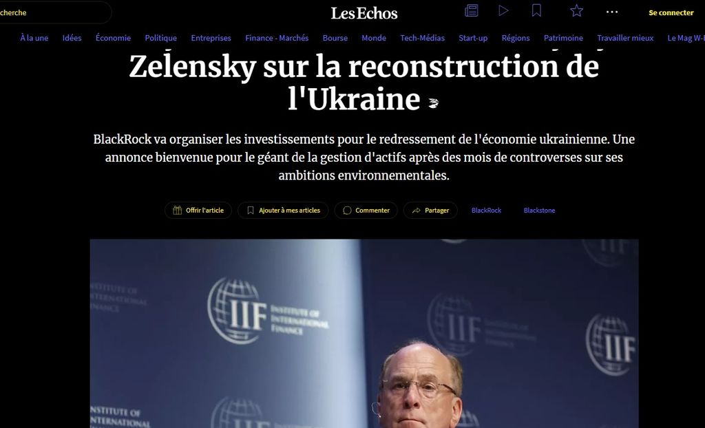 Larry Fink s'accorde avec Volodymyr Zelensky sur la reconstruction de l'Ukraine