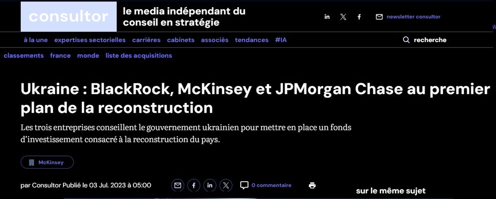 Ukraine : BlackRock, McKinsey et JPMorgan Chase au premier plan de la reconstruction
