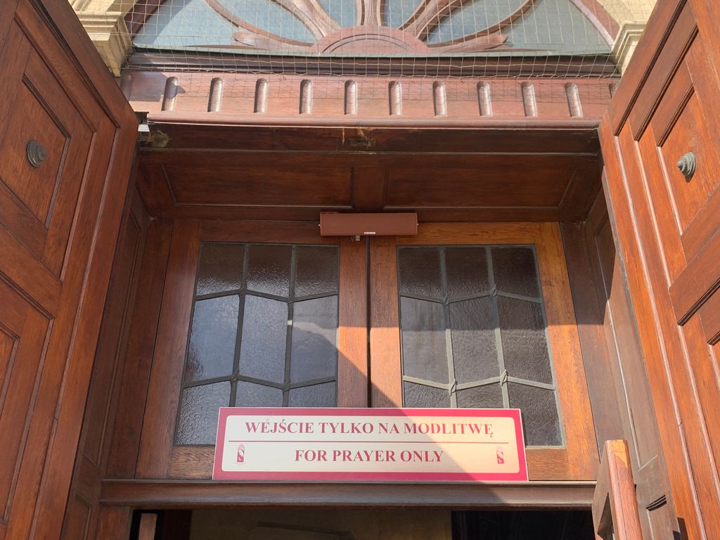Tu as souvent en Pologne un avertissement devant certaines entrées (y compris pour l’ église de mes premières photos)