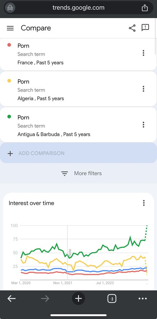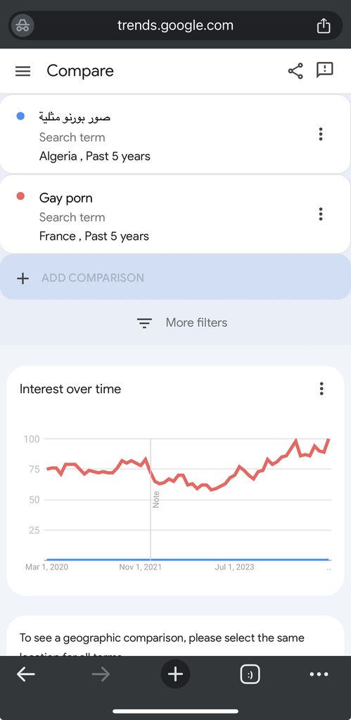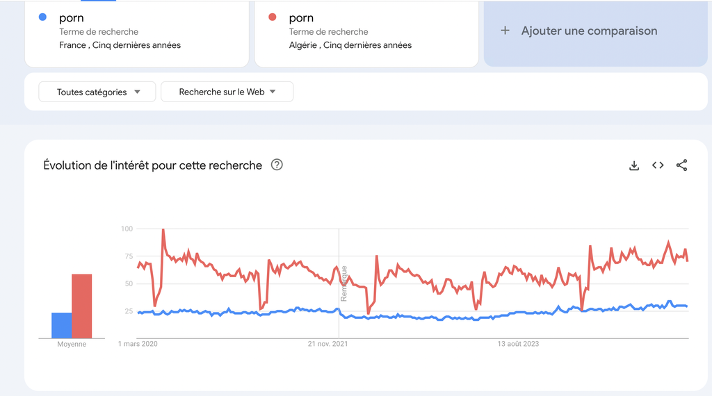 Loin devant l’Algérie, et tu vas me faire croire que malgré cette différence incommensurable, l’Algérie regarderait beaucoup moins de porno dans son intégralité mais beaucoup plus de porno gay en valeur absolue que les français ?