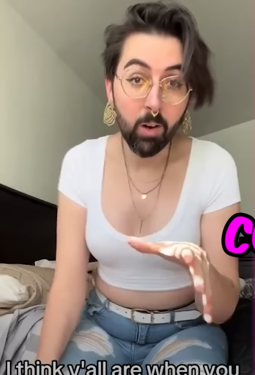 selon toi, est ce que cette personne qui porte une barbe, a des seins, un crop top, est transgenre et souhaite s'inserer dans la société en tant que femme sans faire d'histoire ou c'est le résultat d'un agenda orchestré par les élites qui a matrixé tout les malades mentaux qui d'un coup se sont dit trans lgbt et dont le seul but est de déstabiliser la société ?