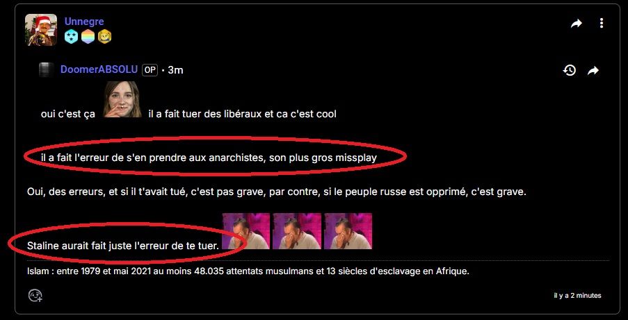 Oui, on va te laisser dans ton stalinisme, n'oubliez pas de lire les versets sur la Torah parlant de tuer des peuples au nom de Yahvé et de ne pas confondre les bords politiques.