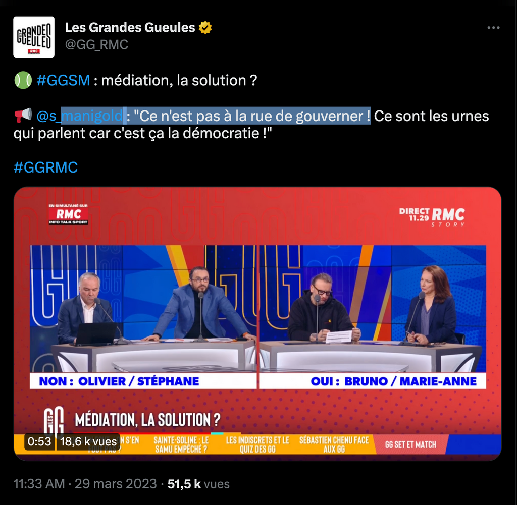 S. Manigold : "Ce n'est pas à la rue de gouverner !"
