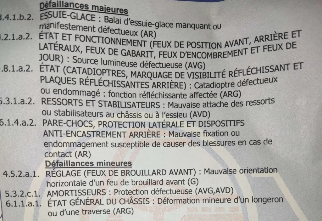 Je l’ai plus mais j’ai dû remplacer mon pare choc arrière qui était tordu à l’intérieur mais ça ne se voyait que d’en dessous lors du contrôle