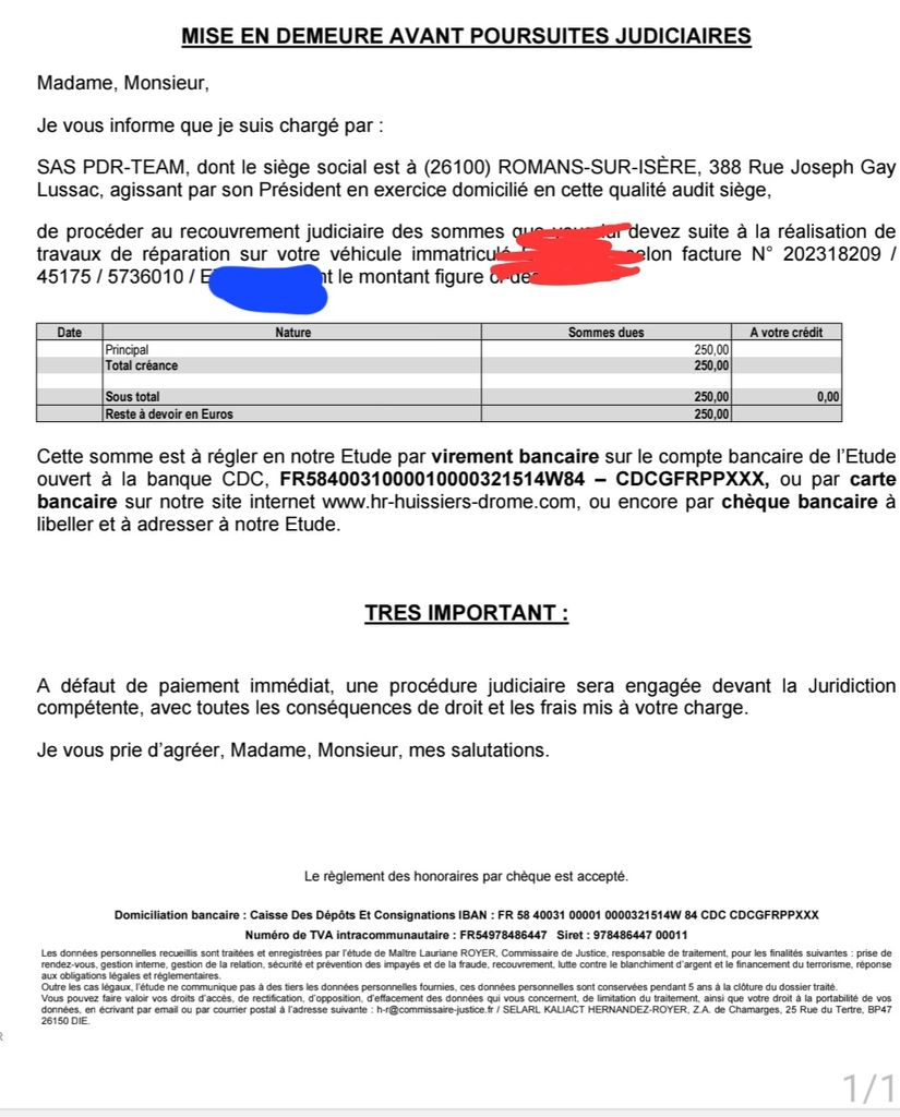 Et la je viens de recevoir un mail d'un commissaire de justice qui me réclame ces 250 euros pour ce famoso garage.