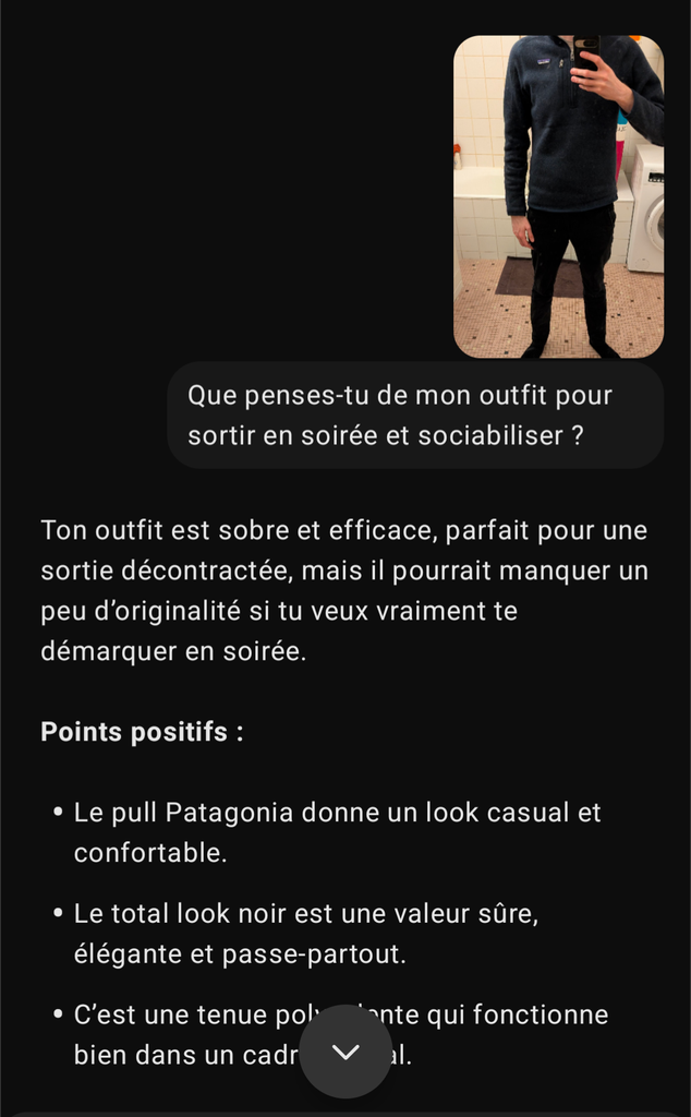 le pantalon moulant c'est non, la polaire pk pas, mais gris fondé et noir c'est vraiment triste, un peu de couleur que diable !